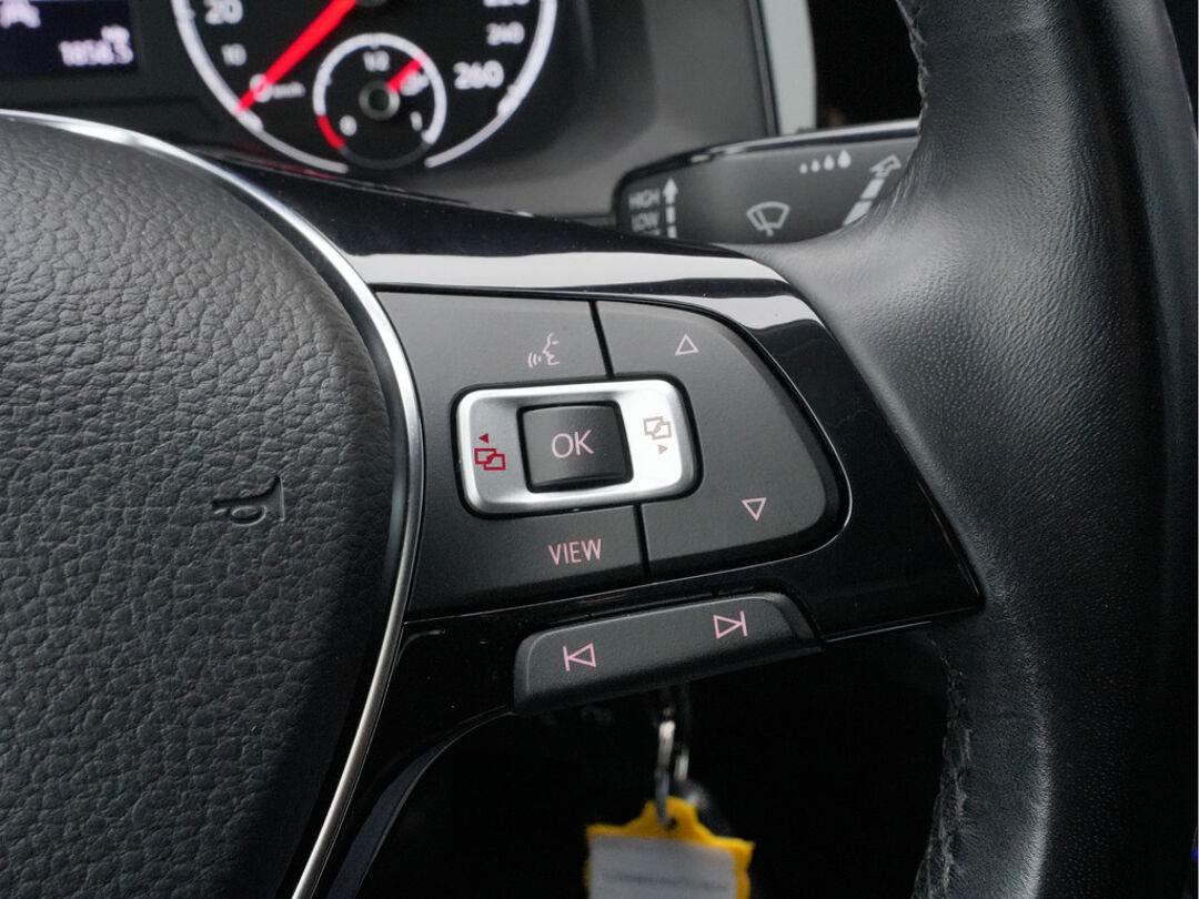 Adaptive cruise control houdt de ingestelde snelheid vast en houdt automatisch afstand tot uw voorligger. Functies activeren en storingen opsporen? Bij deze auto gaat het eenvoudig via uw smartphone. Overal en altijd. Uw veiligheid op de weg wordt verhoogd door het audio-installatiesysteem met DAB-ontvangst en het navigatiesysteem te bedienen vanaf het stuur of met spraakbediening, zodat uw handen veilig op het stuur blijven en uw ogen gericht zijn op de weg. Maak uw smartphone echt draadloos, ook bij het opladen. Met de draadloze telefoonlader. De sensoren van de achteropkomend verkeer waarschuwing houden zicht op de dode hoeken achter u. Te weinig afstand tot de achterligger? Het systeem geeft direct een signaal. Ook is de Volkswagen uitgerust met: WIFI-hotspot, automatische airconditioning, parkeersensoren achter, lederen stuur, centrale deurvergrendeling met afstandsbediening en boordcomputer.