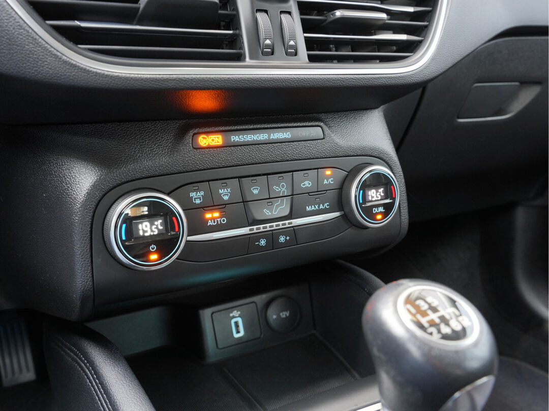 De ingebouwde Connected Services vertellen u via de app alles over de status van de auto. Locatie, onderhoudsstatus, brandstofpeil en nog veel meer! Een goede veiligheidsvoorziening is de spraakbediening en stuurbediening voor belangrijke functies. De auto is natuurlijk voorzien van een full map navigatiesysteem en het audiosysteem biedt glasheldere geluidskwaliteit dankzij DAB-ontvangst. Ook over uw schouder ziet u onderweg niet alles wat er aan de achterzijde gebeurt. Daarom heeft deze Ford Focus een achteropkomend verkeer waarschuwing. Dankzij automatische airconditioning is het interieur behaaglijk warm of verfrissend koel. Parkeerplekken worden er niet ruimer op. Maar met de aanwezige parkeersensoren krijgt u deze Ford Focus zonder problemen op z'n plaats. Natuurlijk behoren WIFI-hotspot, regensensor, cruise control, keyless entry, automatisch dimmende binnenspiegel en lederen stuur ook tot de uitrusting van deze complete auto.