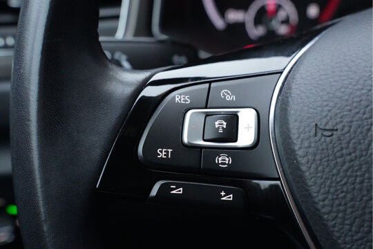 Soepel inparkeren gaat gemakkelijker dan u verwacht dankzij de achteruitrijcamera. Met adaptive cruise control houdt de auto zelfstandig afstand tot uw voorligger. Een veiligheidsverhogende optie waarmee u comfortabel onderweg bent. Een belangrijke veiligheidsvoorziening is de bediening van het audio-installatiesysteem en het full map navigatiesysteem, via knoppen op het stuur en middels spraakbediening. DAB-ontvangst geeft daarbij een kraakheldere ontvangst. Automatische airconditioning regelt volautomatisch de temperatuur. U kiest de gewenste temperatuur en het systeem doet de rest. Om de veiligheid onderweg te verhogen, heeft deze Volkswagen zowel een automatisch inschakelbare verlichting als een regensensor aan boord, zodat hij zelf de verlichting en de ruitenwissers kan inschakelen. Ook is de Volkswagen uitgerust met: automatisch dimmende buitenspiegels, lederen stuur, centrale deurvergrendeling met afstandsbediening, boordcomputer en lederen versnellingspook.