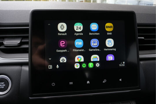 Appen met uw auto? Geen probleem. U kunt van overal contact opnemen, de functies controleren en activeren. U bedient 'm met remote services. Onderweg geniet u van de kwaliteit van het audiosysteem met dab-ontvangst. De bediening is gemakkelijk via knoppen op het stuur. Met de electronic climate control selecteert u de gewenste temperatuur. Het systeem doet de rest. Liever gepiep dan gekraak? Dan zult u blij zijn met de aanwezige parkeersensoren! De elektronische systemen in deze Renault helpen u actief om comfortabeler te rijden. Een automatisch inschakelbare verlichting en een regensensor houden de omstandigheden onderweg in de gaten. Deze Renault is voorzien van schakelpaddles aan het stuur, cruise control, keyless entry, automatisch dimmende binnenspiegel, boordcomputer en lederen versnellingspook.
