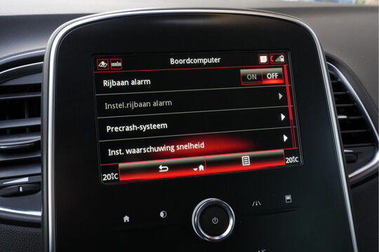 Deze Renault biedt u niet alleen comfort en rijplezier, maar ook veiligheid. Actieve veiligheidssystemen houden voor u de weg in de gaten en reageren op onvoorziene situaties voordat u dat kunt. Verkeersborddetectie herkent tijdelijke en permanente verkeersborden langs en boven de weg. Het Lane-keeping systeem zorgt dat u mooi binnen de lijntjes blijft. Ongemerkt buiten de rijstrook komen is er niet meer bij. Met de vermoeidheidsassistent bent u ook op lange ritten veilig op pad. Het systeem geeft een waarschuwing zodra het tijd is voor een pauze. Met voorzieningen als brake assist en bandenspanningcontrolesysteem, bent u altijd veilig onderweg.