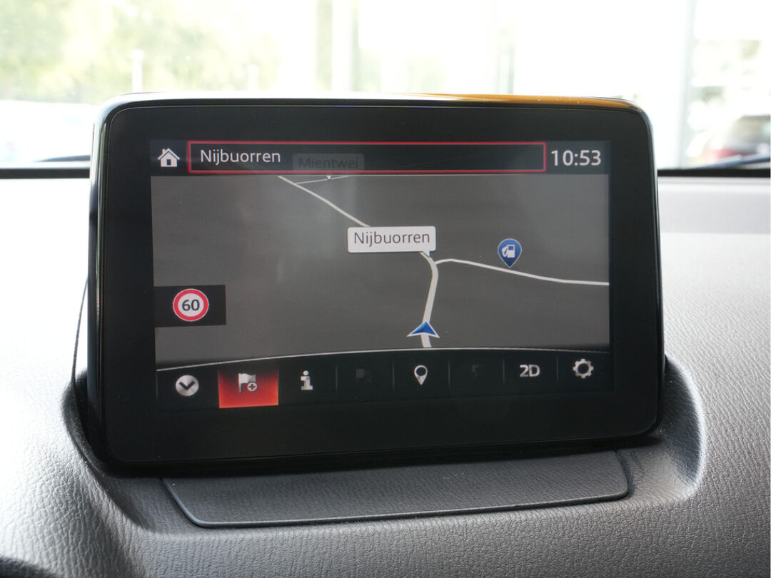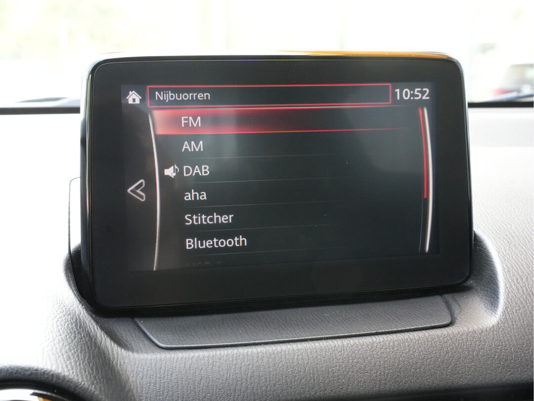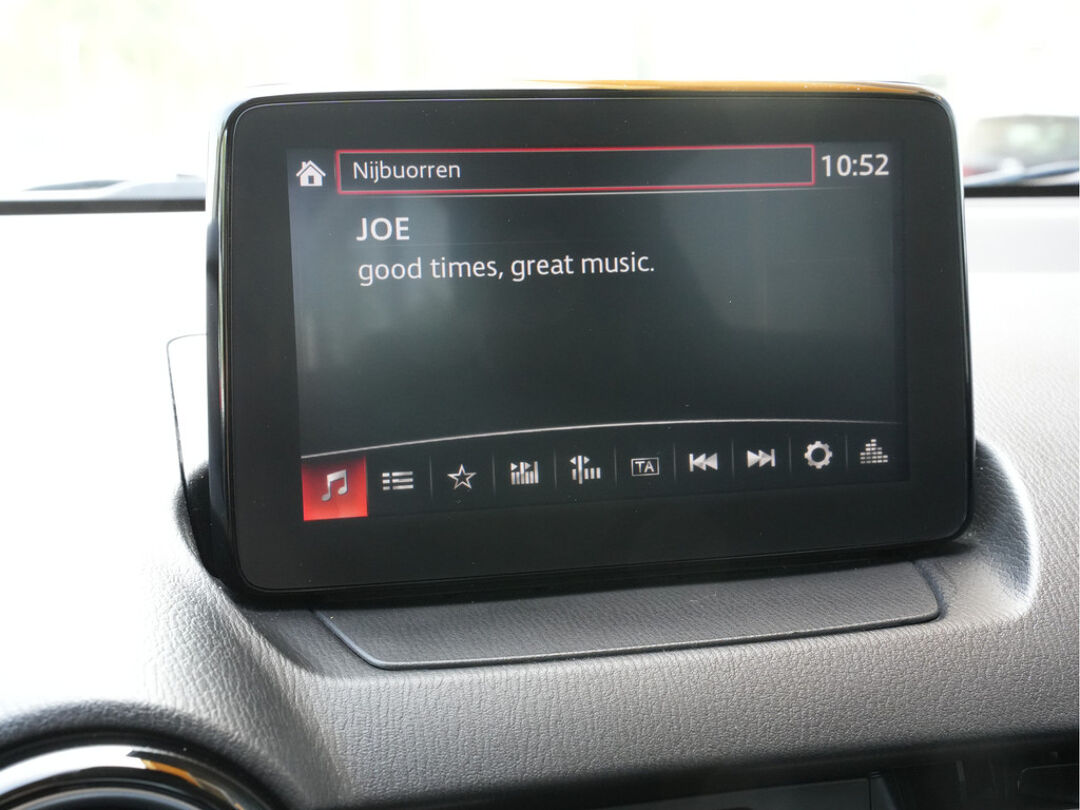 Bij het inparkeren hoeft u het laatste stukje niet te gokken: de achteruitrijcamera kijkt voor u uit. Bedient u de auto liever met uw stem? Dan is het goed om te weten dat spraakbediening aanwezig is. Het full map navigatiesysteem zorgt ervoor dat u altijd de juiste en snelste route vindt. Aan boord van deze Mazda 2 is een achteropkomend verkeer waarschuwing voor extra veiligheid. De DAB-ontvanger zorgt voor een ruime keuze uit digitale radiozenders en een kristalheldere geluidsweergave. Extra opties op deze auto zijn: cruise control, airconditioning, lederen stuur, centrale deurvergrendeling met afstandsbediening, boordcomputer en lederen versnellingspook.