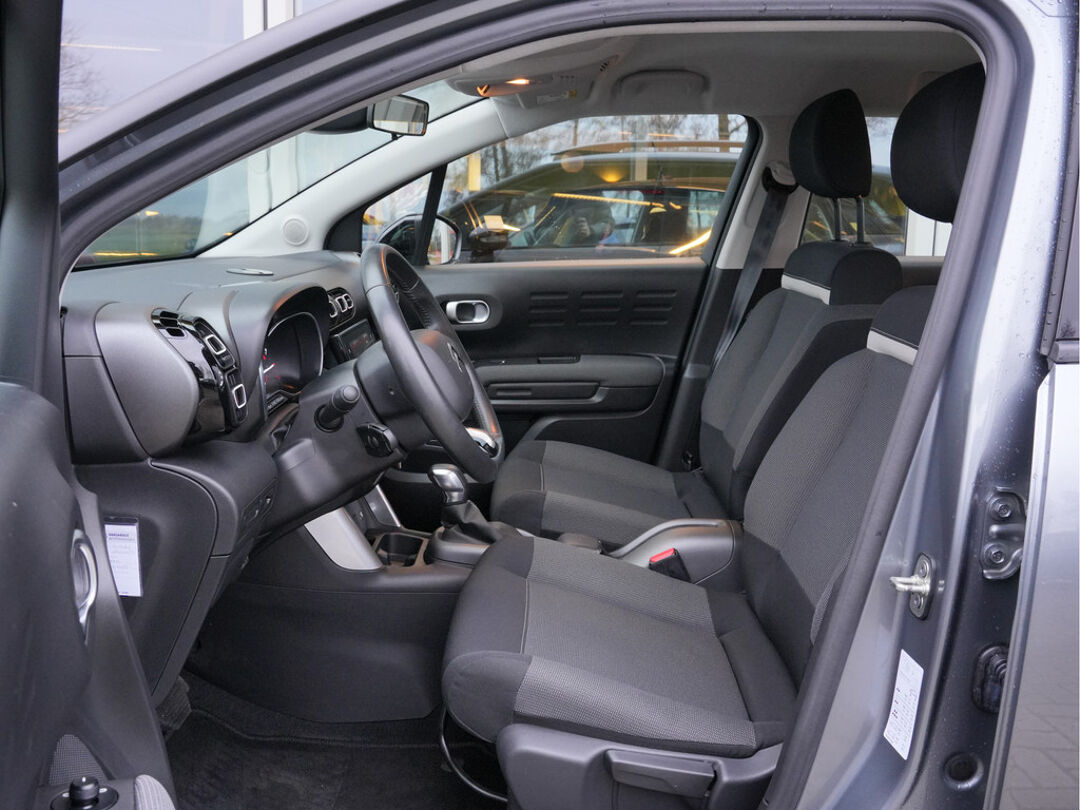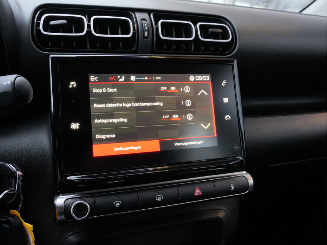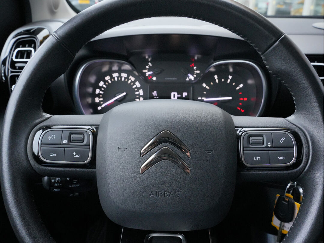 Zoals u mag verwachten van deze Citroën C3 Aircross is hij uitgerust met een reeks aan actieve veiligheidssystemen. De actuele snelheidslimiet, een inhaalverbod en andere verkeersborden; de verkeersborddetectie ondersteunt u tijdens elke rit. Het Lane-keeping systeem garandeert dat u zich niet onverhoeds buiten de lijnen van de rijstrook begeeft. Deze auto waarschuwt de bestuurder als die tekenen van vermoeidheid vertoont en kan zo ernstige ongelukken voorkomen. Verder is deze auto uitgerust met hill hold functie en bandenspanningcontrolesysteem.