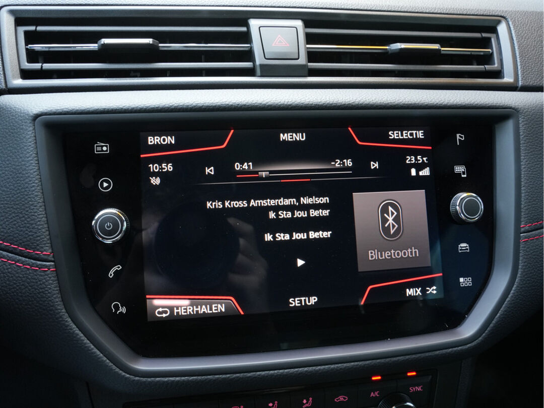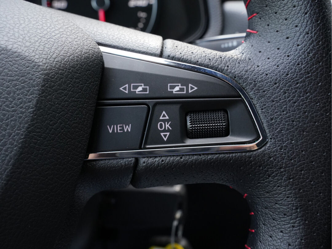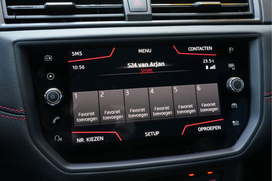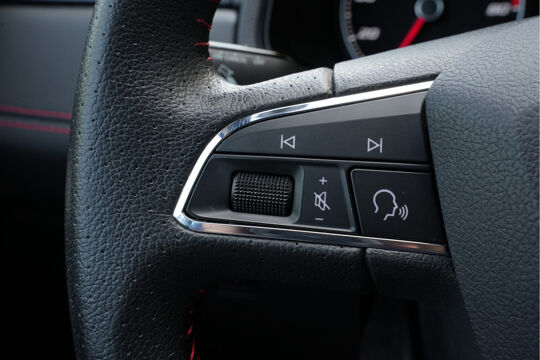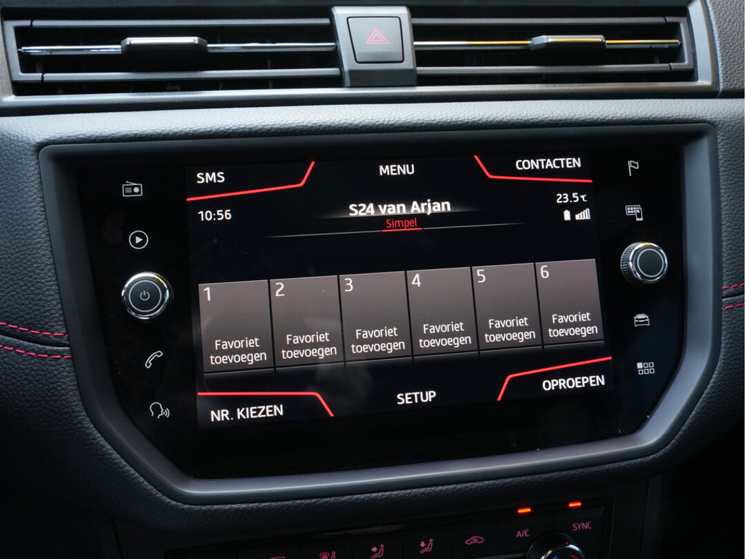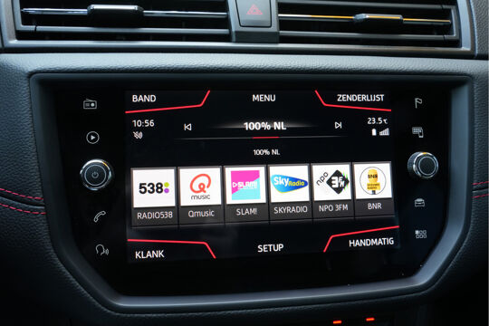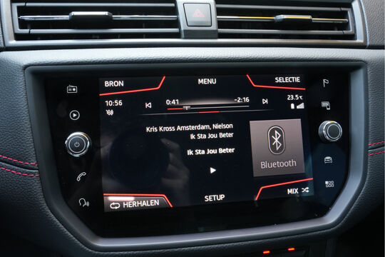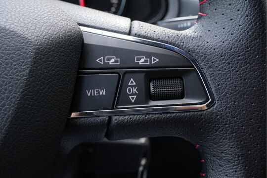 Zodra u naar de 'R' schakelt, gaat de achteruitrijcamera in werking en heeft u een perfect zicht op alles wat zich achter de auto afspeelt. Selecteer uw reisbestemming en het full map navigatiesysteem brengt u snel waar u moet zijn. In een auto als deze kunt u niet zonder automatische airconditioning, zodat de temperatuur altijd goed is. Alle belangrijke audiofuncties zijn regelbaar zonder het stuur los te laten. De knoppen bevinden zich onder uw vingers. De elektronische systemen in deze SEAT helpen u actief om comfortabeler te rijden. Een automatisch inschakelbare verlichting en een regensensor houden de omstandigheden onderweg in de gaten. Ook cruise control, automatisch dimmende binnenspiegel, lederen stuur, centrale deurvergrendeling met afstandsbediening, boordcomputer en lederen versnellingspook zijn aan boord.