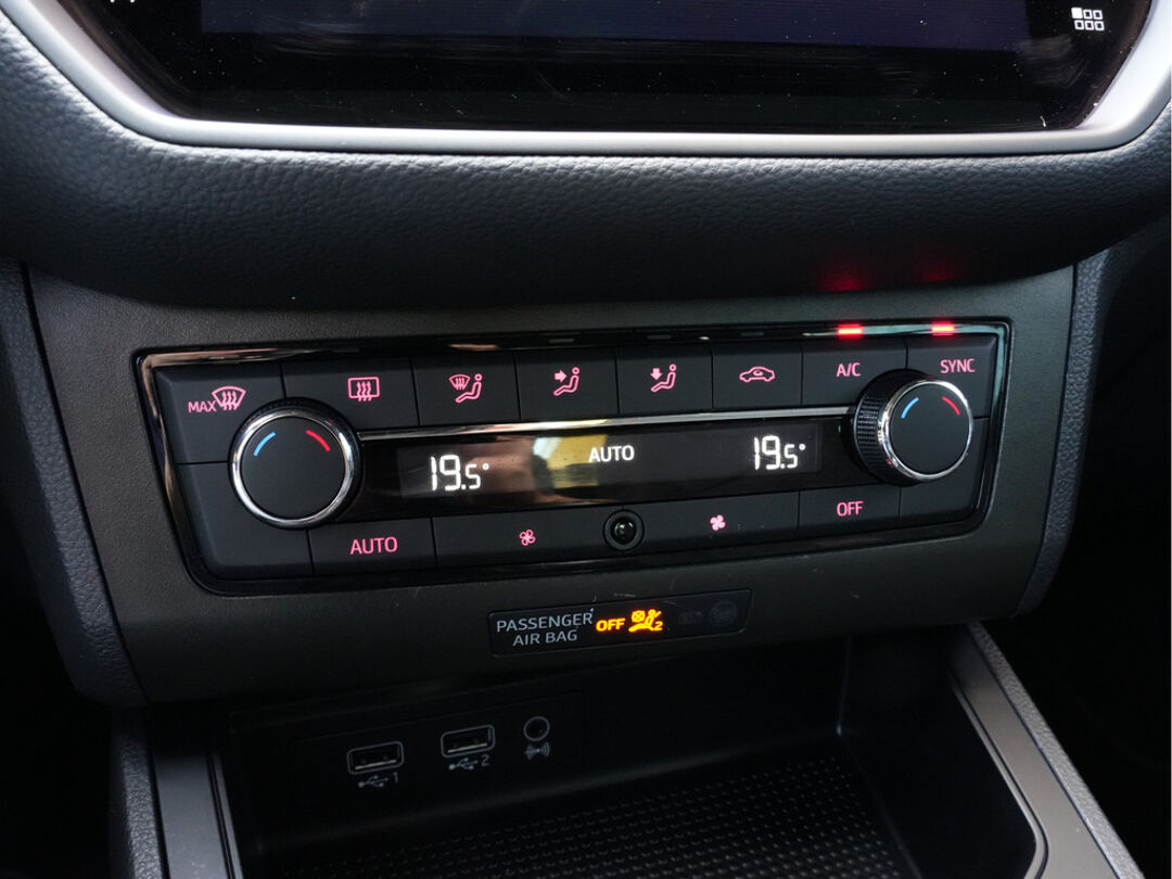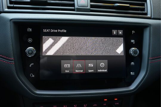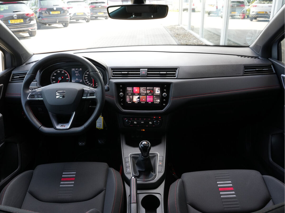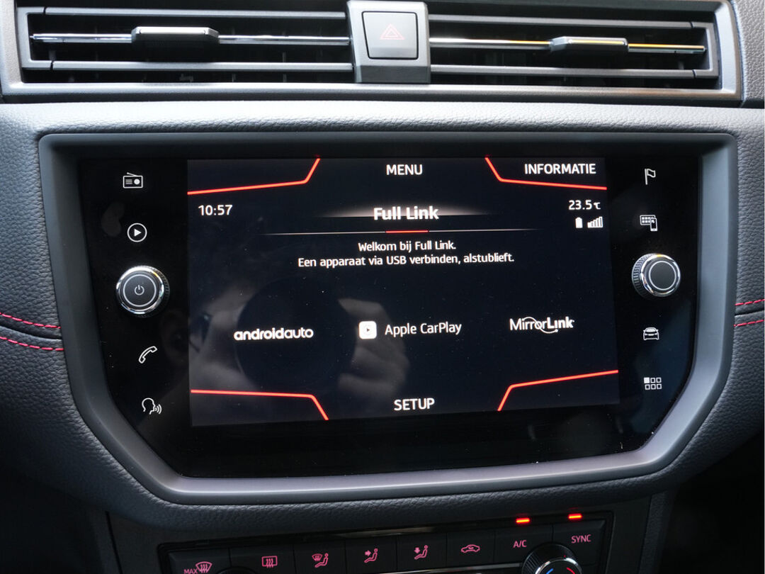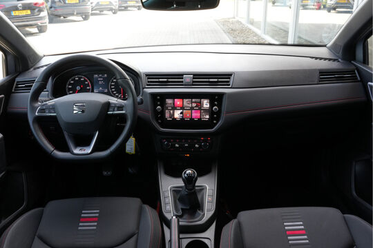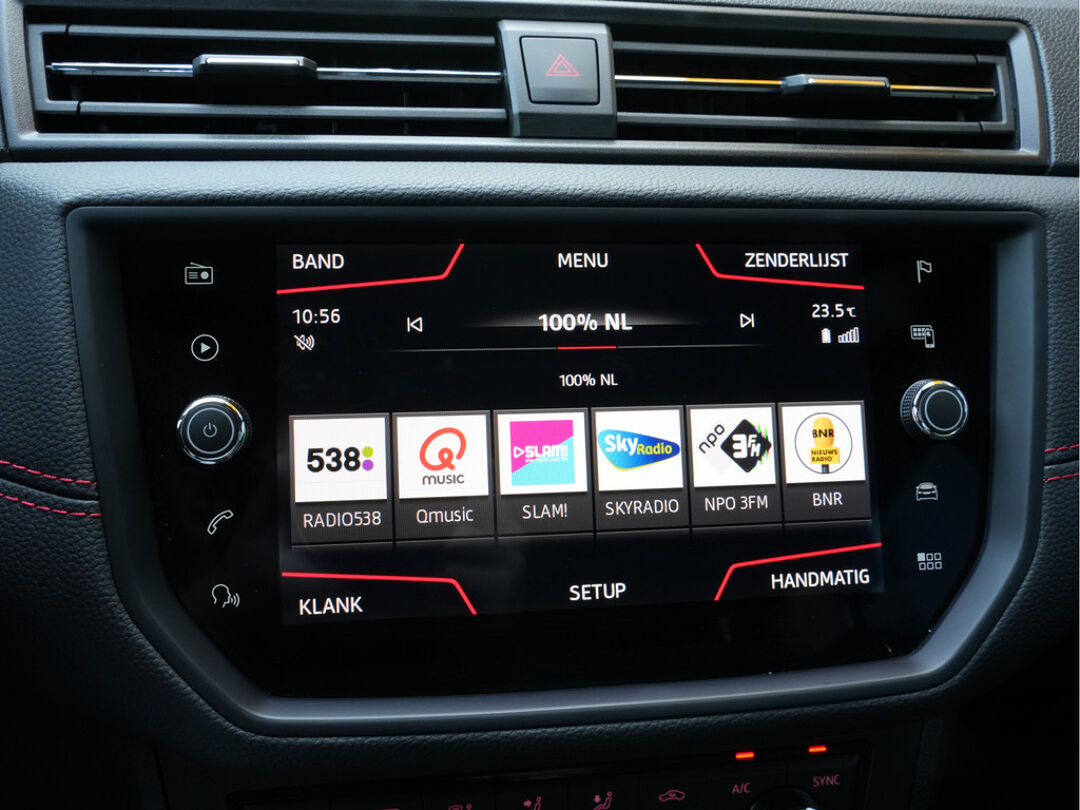 Zodra u naar de 'R' schakelt, gaat de achteruitrijcamera in werking en heeft u een perfect zicht op alles wat zich achter de auto afspeelt. Selecteer uw reisbestemming en het full map navigatiesysteem brengt u snel waar u moet zijn. In een auto als deze kunt u niet zonder automatische airconditioning, zodat de temperatuur altijd goed is. Alle belangrijke audiofuncties zijn regelbaar zonder het stuur los te laten. De knoppen bevinden zich onder uw vingers. De elektronische systemen in deze SEAT helpen u actief om comfortabeler te rijden. Een automatisch inschakelbare verlichting en een regensensor houden de omstandigheden onderweg in de gaten. Ook cruise control, automatisch dimmende binnenspiegel, lederen stuur, centrale deurvergrendeling met afstandsbediening, boordcomputer en lederen versnellingspook zijn aan boord.