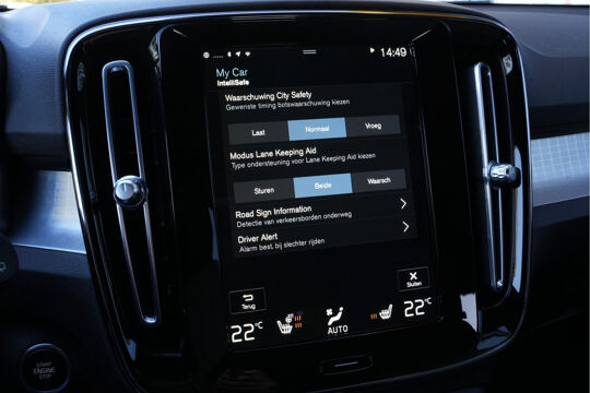 Het zal u verbazen hoe deze auto in staat is om voor u de omgeving en het verkeer om u heen in de gaten te houden. Bij de veiligheidssystemen van deze Volvo hoort ook de verkeersbord-detectie. Die leest tijdens het rijden als het ware met u mee en attendeert u op de significante verkeersborden langs en boven de weg. Ongemerkt buiten de rijstrook raken? Nee hoor, het Lane-keeping systeem waarschuwt en corrigeert. Bij afslaan en inhalen waarschuwt de actieve dodehoekdetectie meteen als er gevaar is vanwege voertuigen buiten uw zichtveld. Bovenop deze veiligheidsfeatures heeft deze Volvo bovendien forward collision warning system, hill hold functie, brake assist, vermoeidheidsherkenning en bandenspanningcontrolesysteem.
