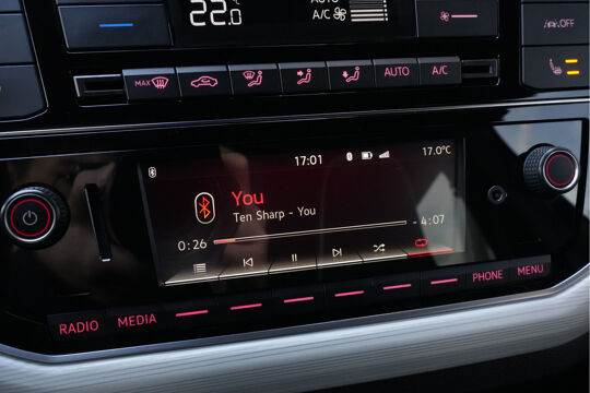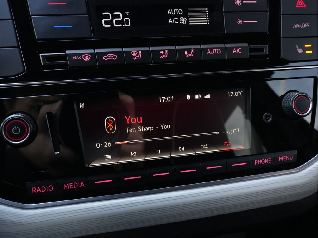 De automatische airconditioning zorgt voor een prettige binnentemperatuur. Ook lekker handig is de audiobediening op het stuur. Voor storingvrije digitale radio-ontvangst zorgt de DAB-ontvanger. Kom-maar-kom-maar...ho! Zo eenvoudig is het voordeel van parkeersensoren. En zo behulpzaam! De elektronische systemen in deze SEAT helpen u actief om comfortabeler te rijden. Een automatisch inschakelbare verlichting en een regensensor houden de omstandigheden onderweg in de gaten. Deze SEAT is voorzien van cruise control, lederen stuur, centrale deurvergrendeling met afstandsbediening, boordcomputer en lederen versnellingspook.
